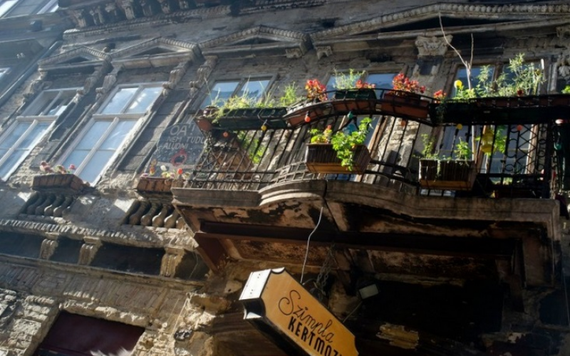 The story is well known, an abandoned and partially ruined complex is turned into a garden (âKertâ) with many spaces to explore and hang out. The decoration is added to by the people who come by, which is why it is covered in grafitti and personal messages, and ancient, repurposed furnishings.