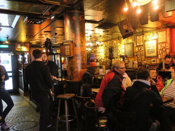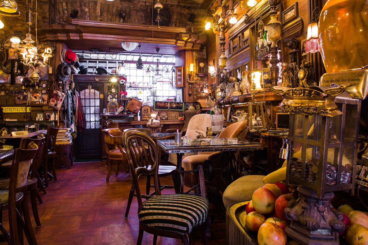 Brooding and candle-lit, there is always a comfortable nook and/or cranny to grab a beer and relax in, and no end of peculiar items to look at. Windowless and cocoon-like, there is a special atmosphere in the evenings that is difficult to compare with anything or anywhere else.