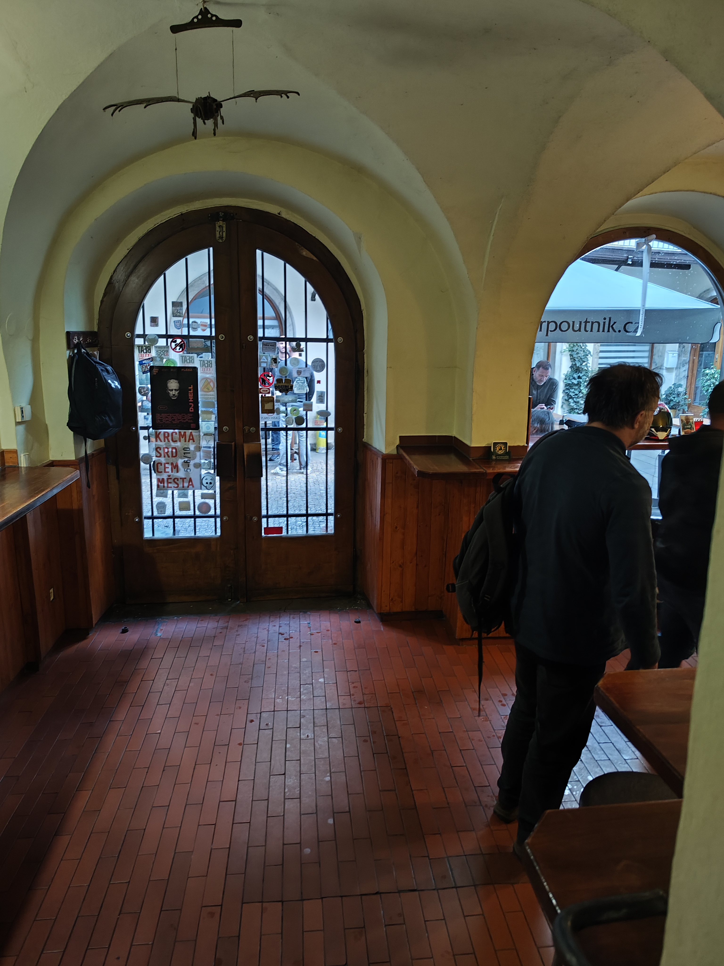 With a hit of smug devilish glee, we can honestly say this is a hidden gem, one that some Brno residents have no idea exists. At first glance you may have thought this was a throwback boozer, looking at clips and images. While the bar area certainly gives off that impression, this is very much a relevant present day pub with a crowd to match. Distinctive with its mid-brown wood furniture, curved ceilings and religious iconography on the walls.
