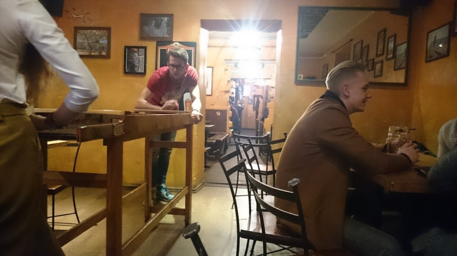 On entering, you will find the bar directly to your right. You will have quickly noticed the place is very nicely decorated, with an array of communist-era nostalgia among one or two new artworks, with a few tables directly opposite the bar top to sit around.