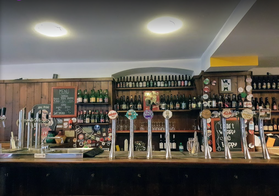 OP is based in a tall long room with a curved brick ceiling nearly 15 metres up. I would not be surprised if the room had a specific different use in the past (a water tank perhaps, like Azimut in Sibenik?) but the effect on the bar is endowing it with acres of wall space.