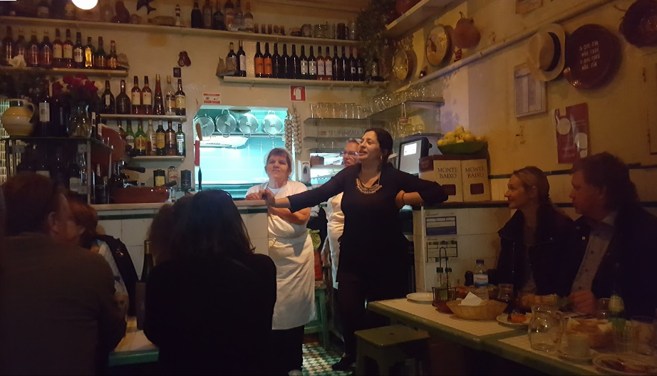 We gathered on a communal table in a small room, most places taken already, and were made to feel welcome with a couple of glasses of red wine. There is no stage, and the musicians simply perform in the corner of the room. Each song is dramatic and passionate and the performers looked extremely well practiced at the style. An overkill of maudlin music doesnât seem like the basis for a night out, but the songs are short, melodic, often intense and were received enthusiastically by the room.